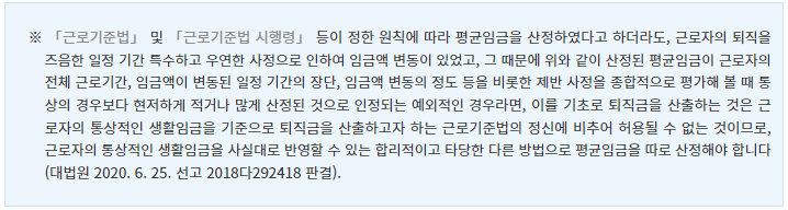 퇴직급여를 계산 할 때 평균임금으로 적용하는데 주의할 점이 있습니다.